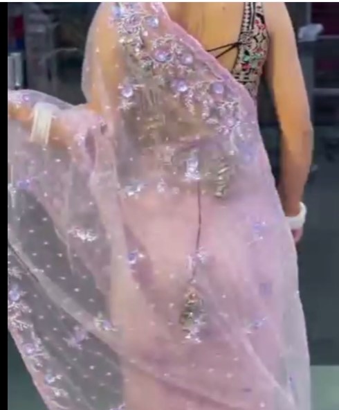 Grace meets glamour in this Baby Pink Floral Embroidered Net Saree. Adorned with intricate sequin and thread floral detailing, this saree brings a dreamy and ethereal charm to your festive look. The soft net fabric drapes beautifully, while the multicolor embroidered blouse adds a statement contrast for a modern edge.