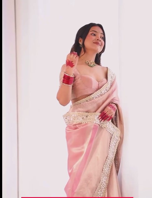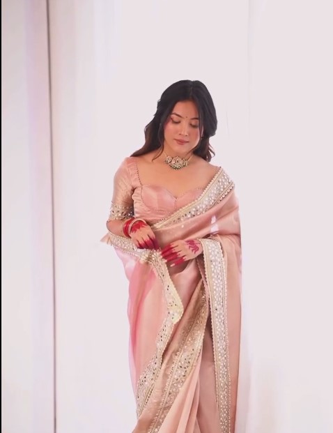 Blush Pink Designer Satin Saree