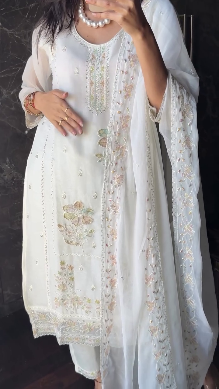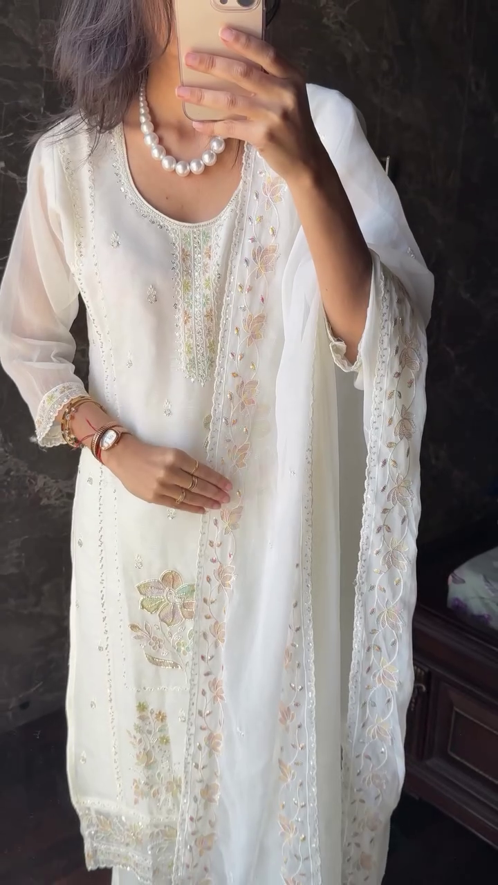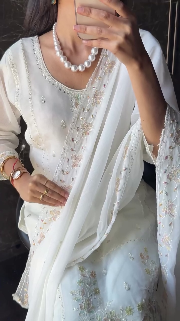 Floral Embroidered Pakistani Style Semi Stitched Dress Material
