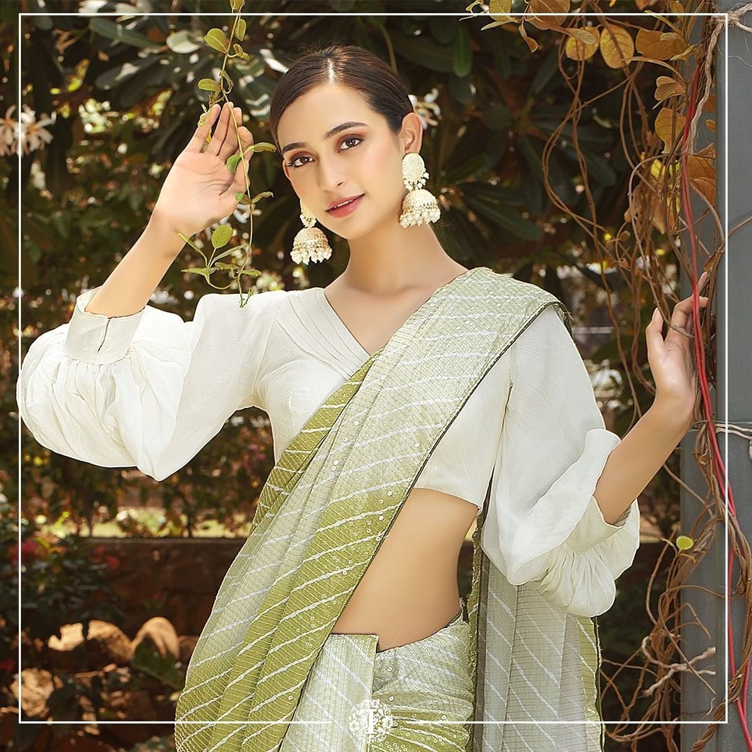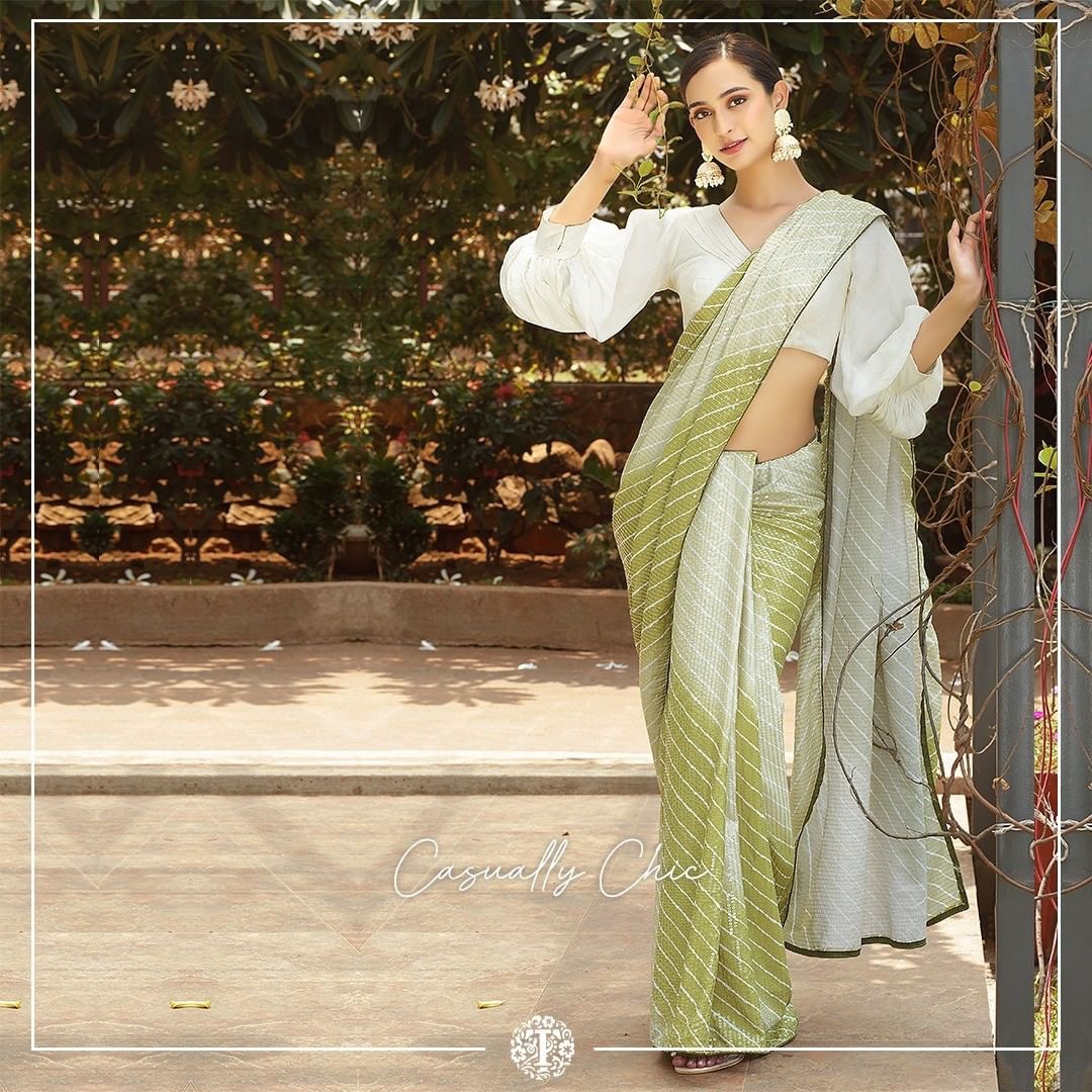 Mehndi Color Beautiful Floral And Leheriya Print Saree