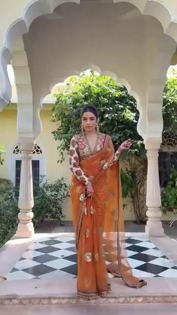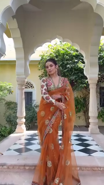Title: Orange Embroidered Net Saree with Sequin Blouse