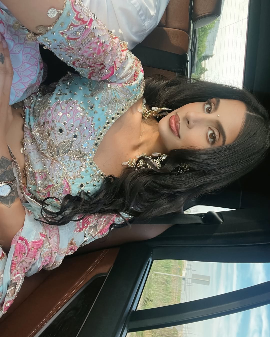 Pastel Blue & Pink Heavy Embroidered Butterfly Lehenga Set