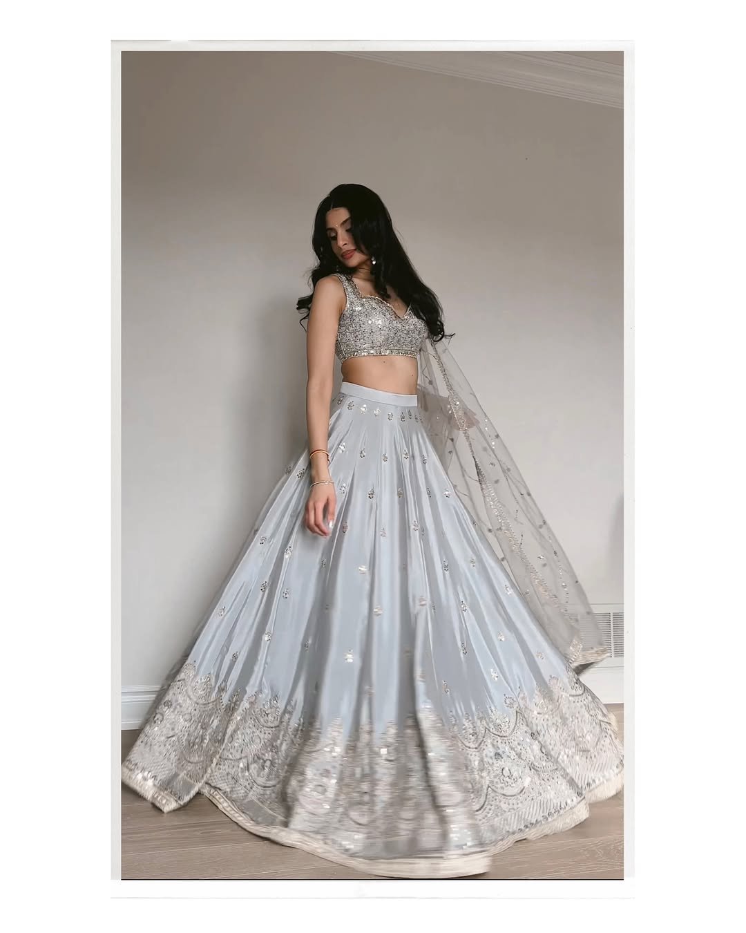Silver Grey Sequins Embroidered Lehenga Choli with Net Dupatta
